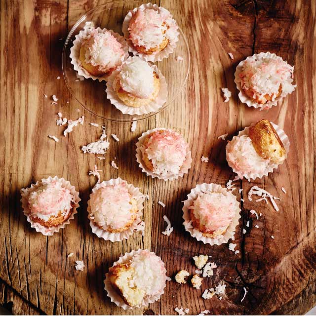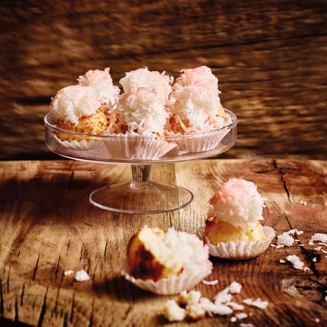 Coconut macaroon biscuit base with shredded coconuts on top (20 pcs)