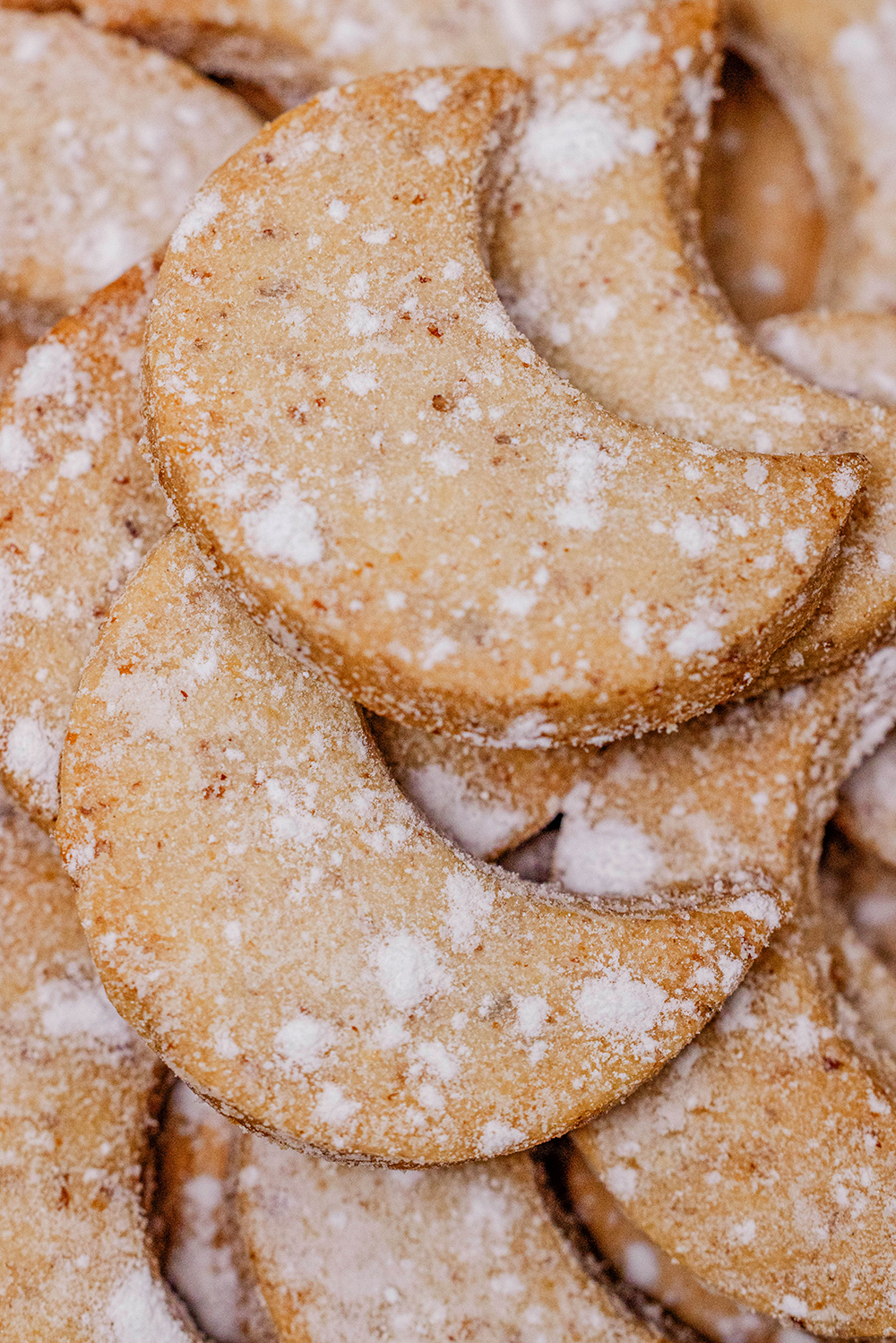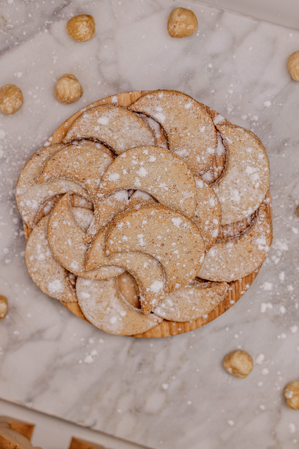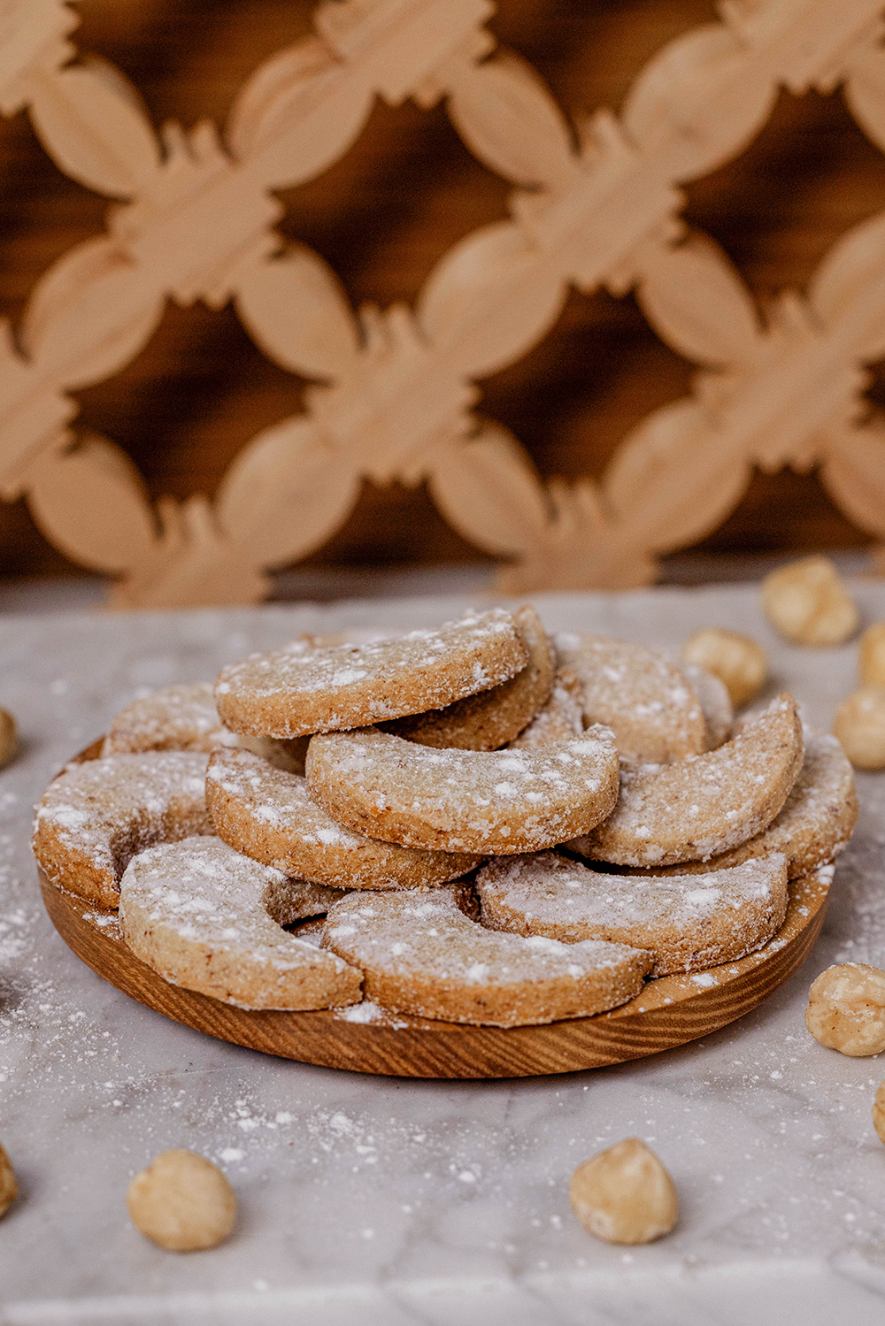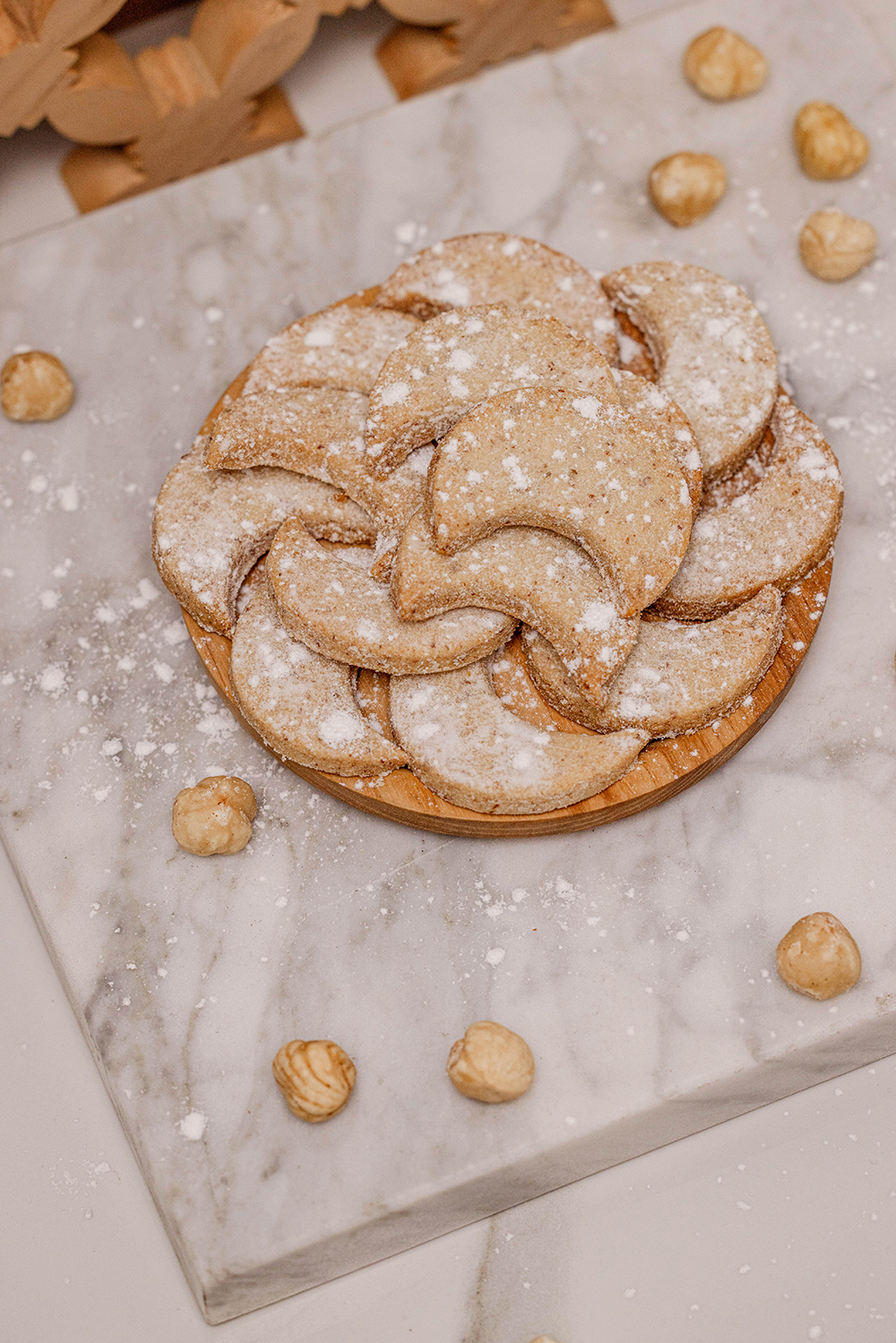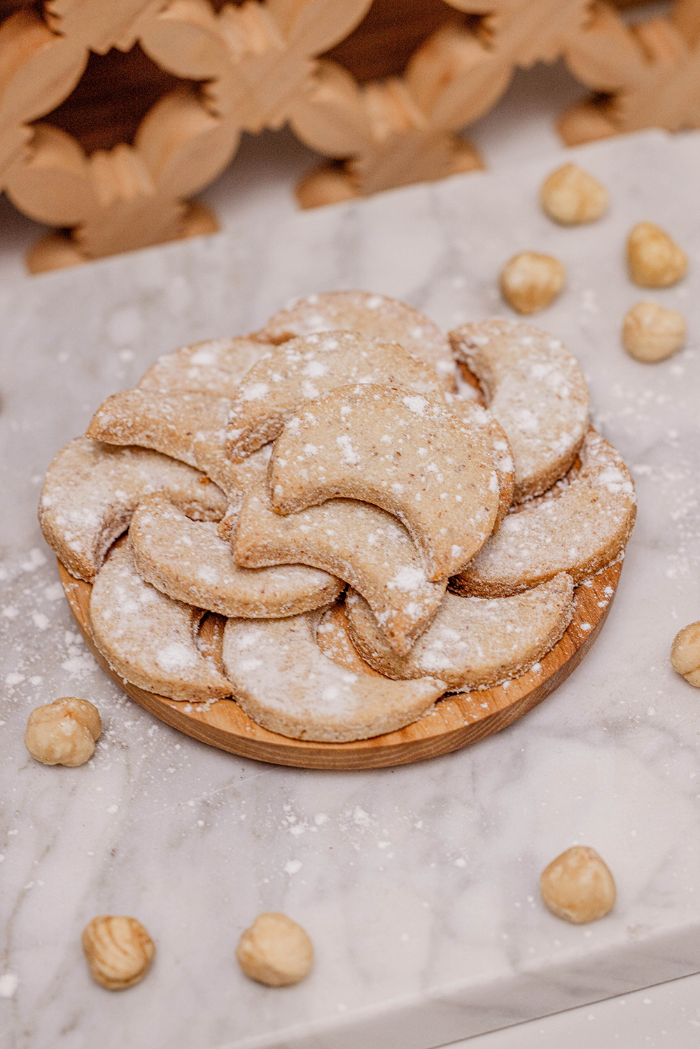 Hazelnut cookies covered in snow sugar.(20 PCs)