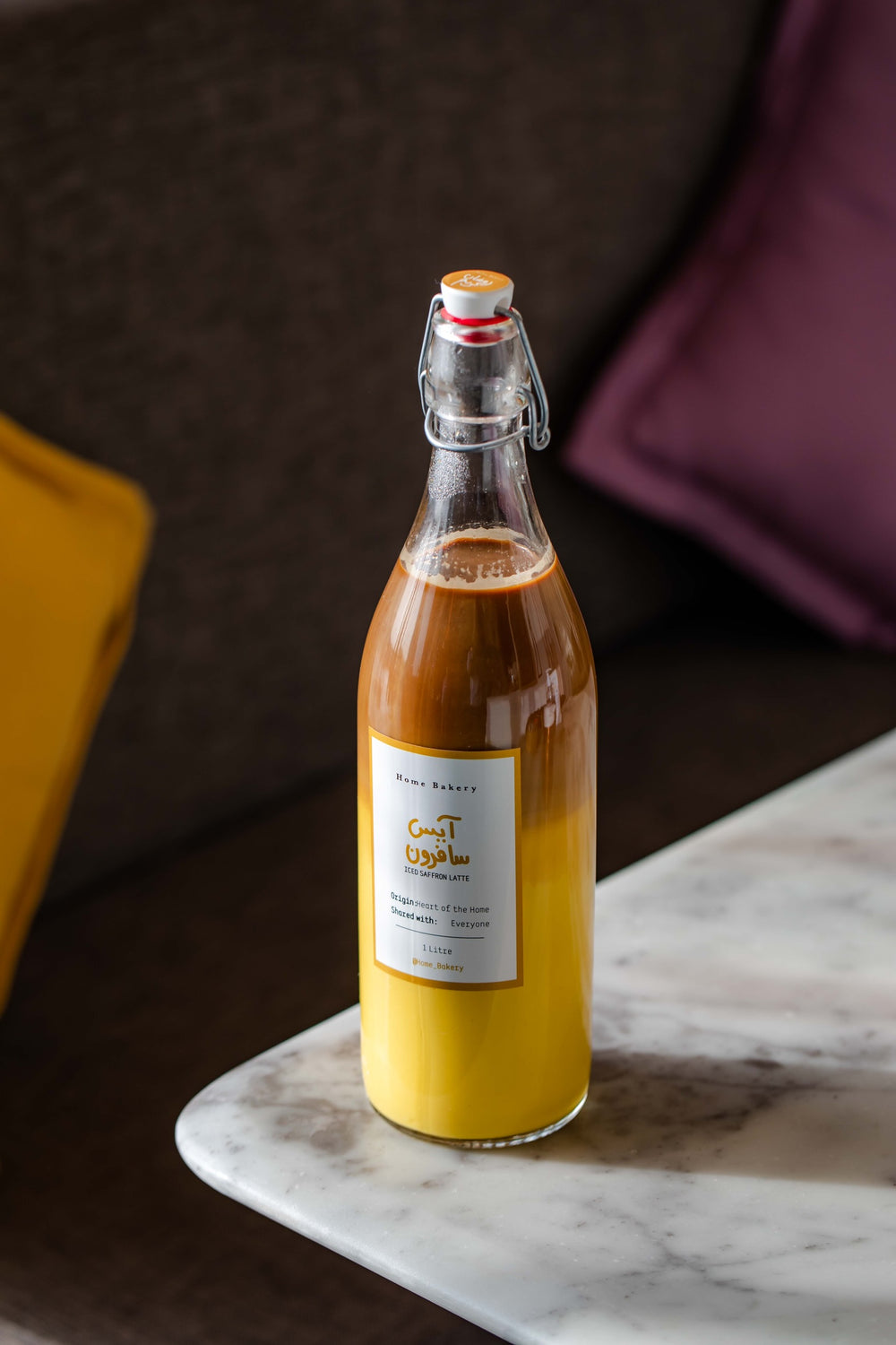 1 litre of bottled iced saffron latte