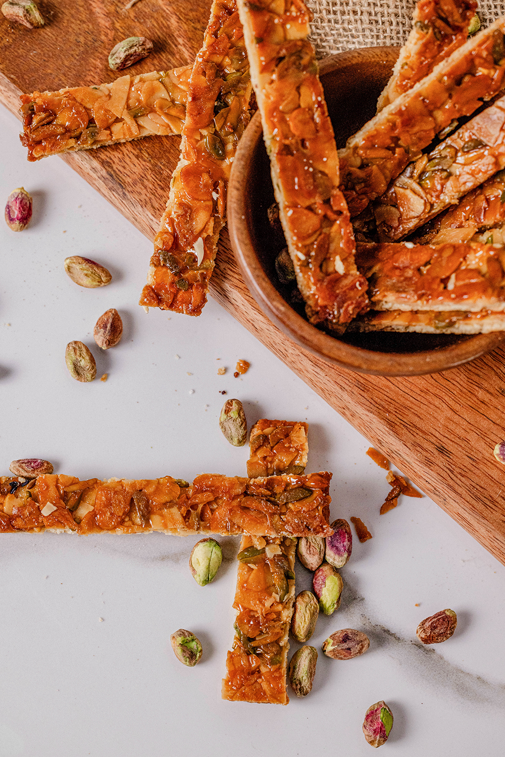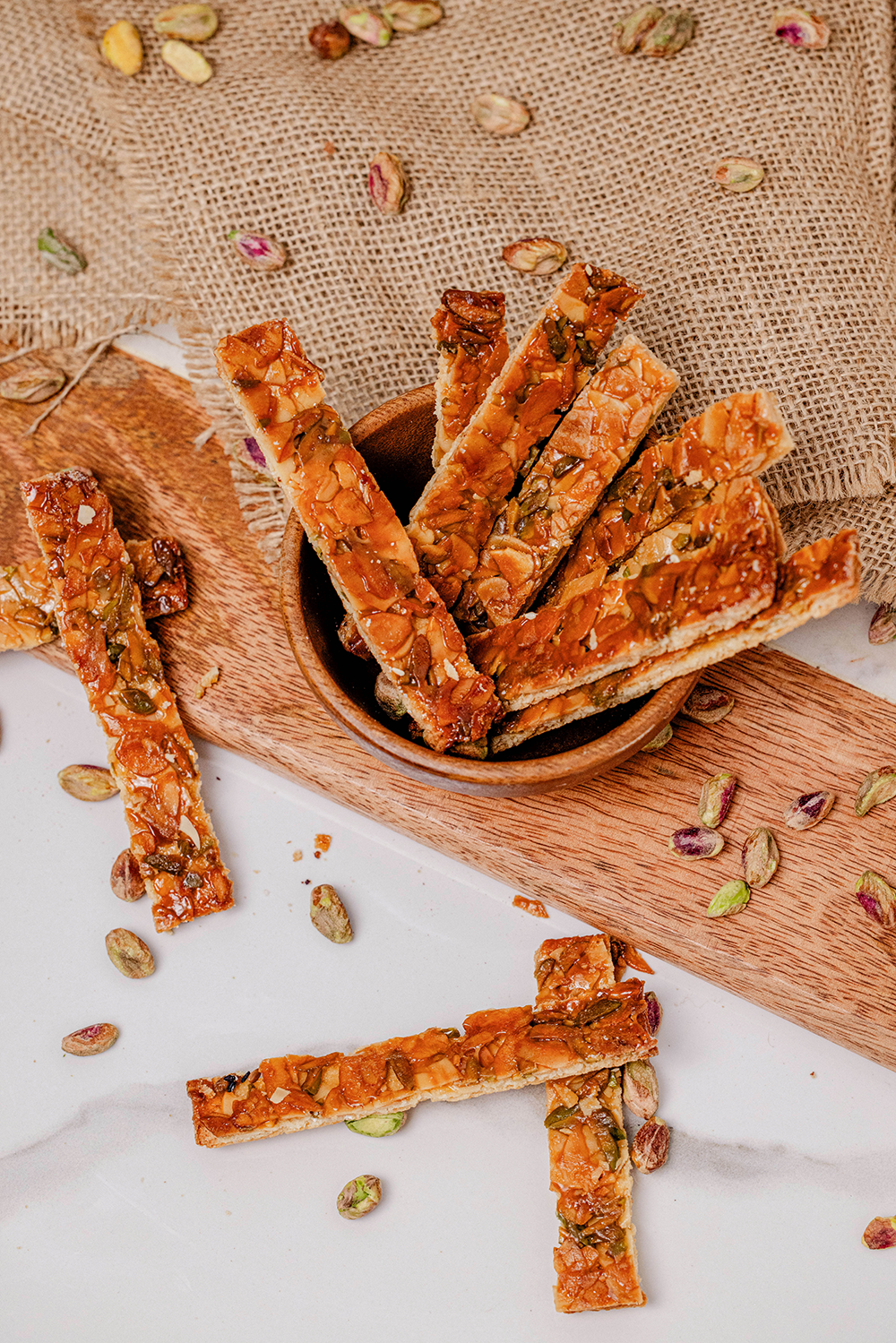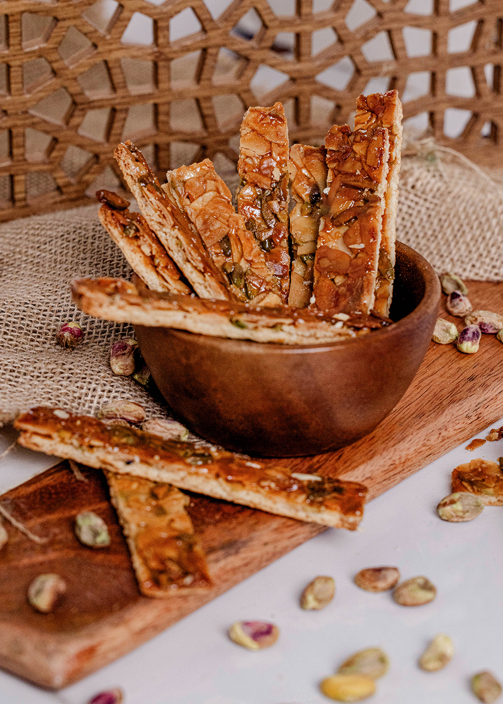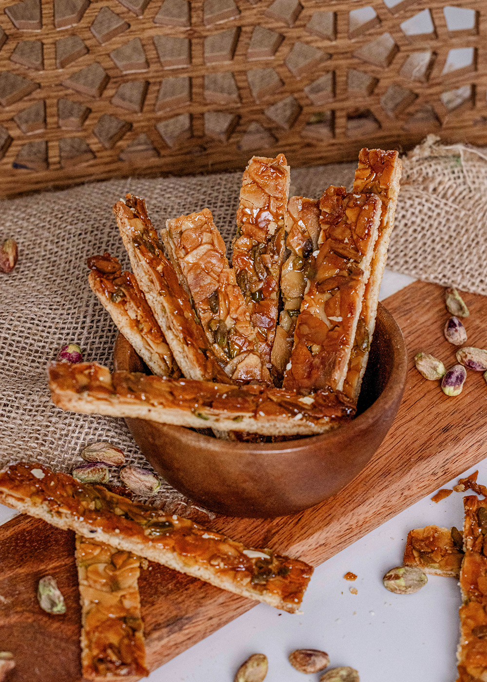 Citrus biscotti with almond & topped with pistachio Florentine.(20 PCs)