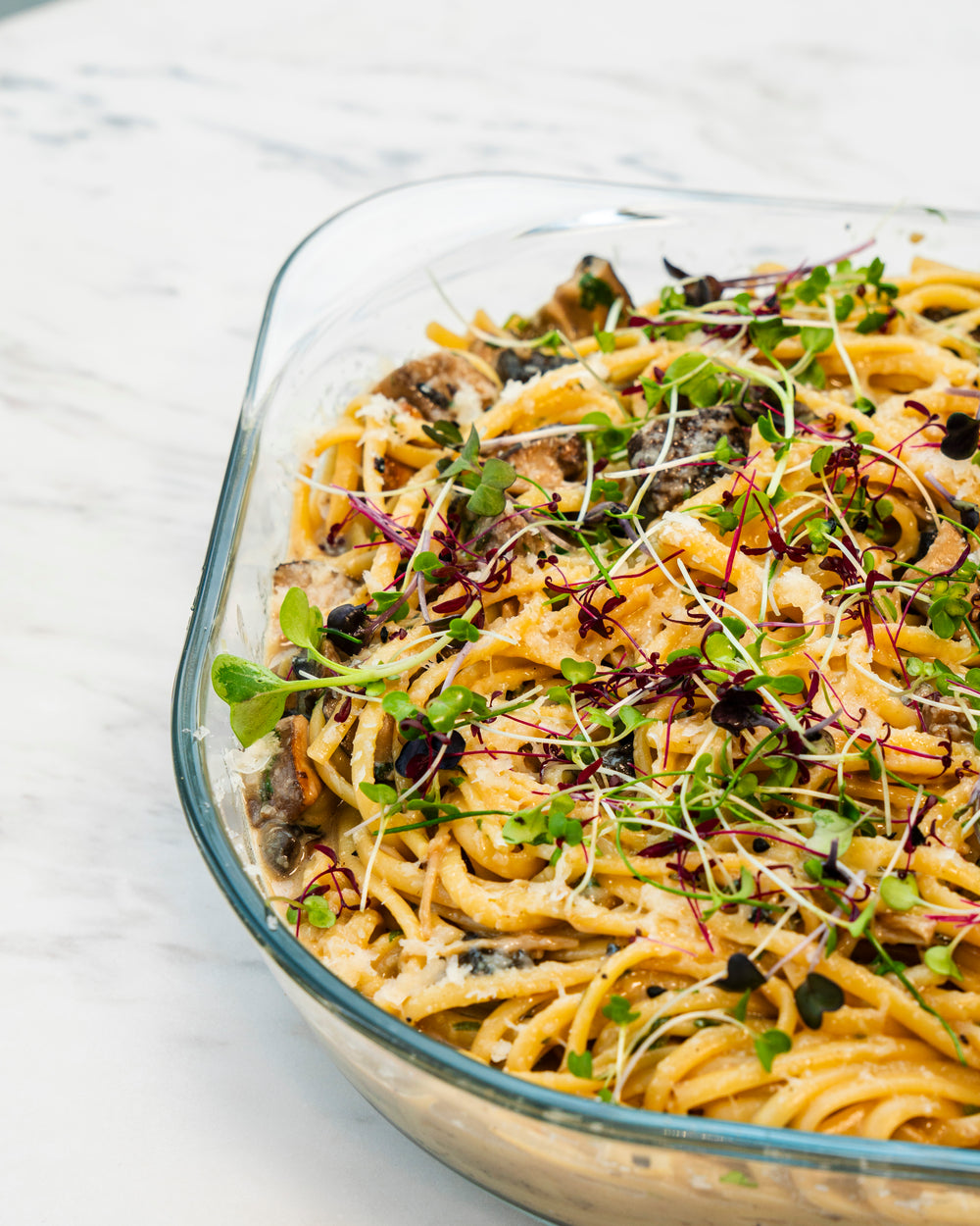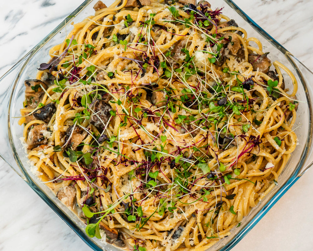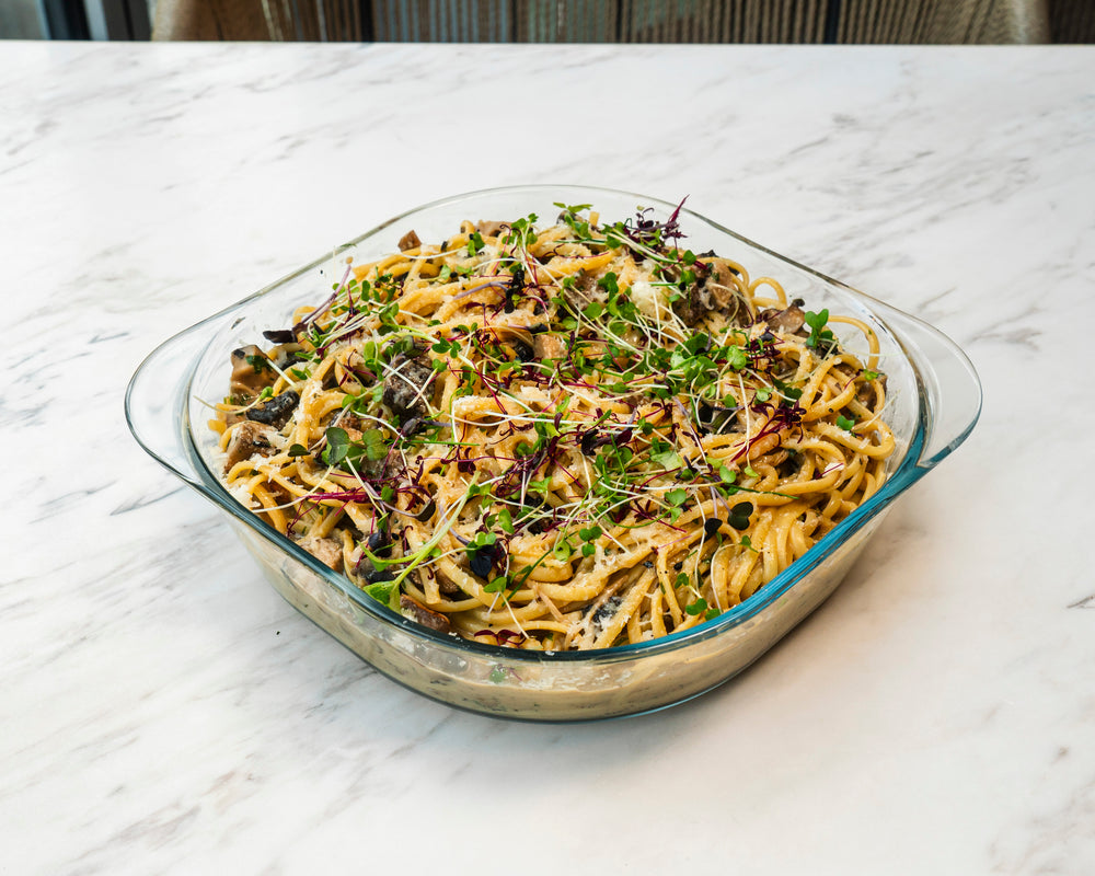 Linguine pasta cooked in Wild mushrooms sauce, truffle paste and pecorino Romano